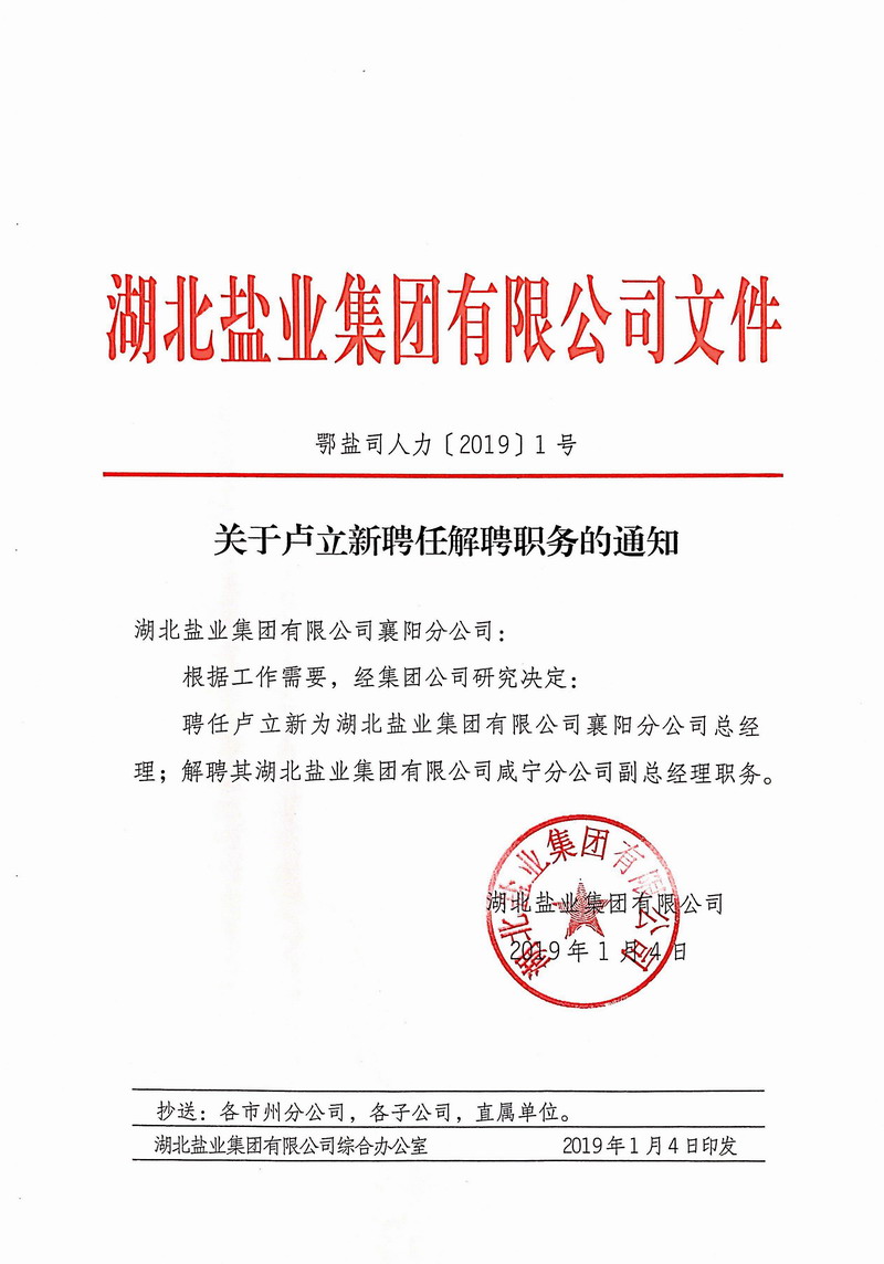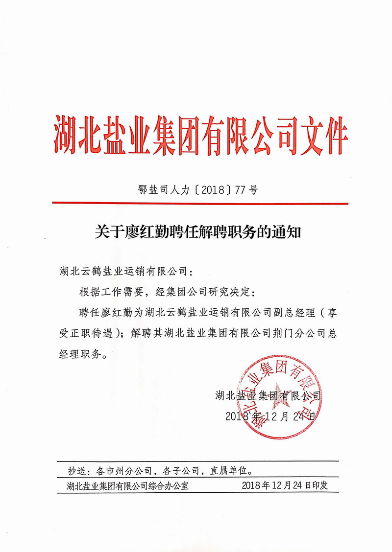 分子公司領(lǐng)導(dǎo)干部調(diào)整通知