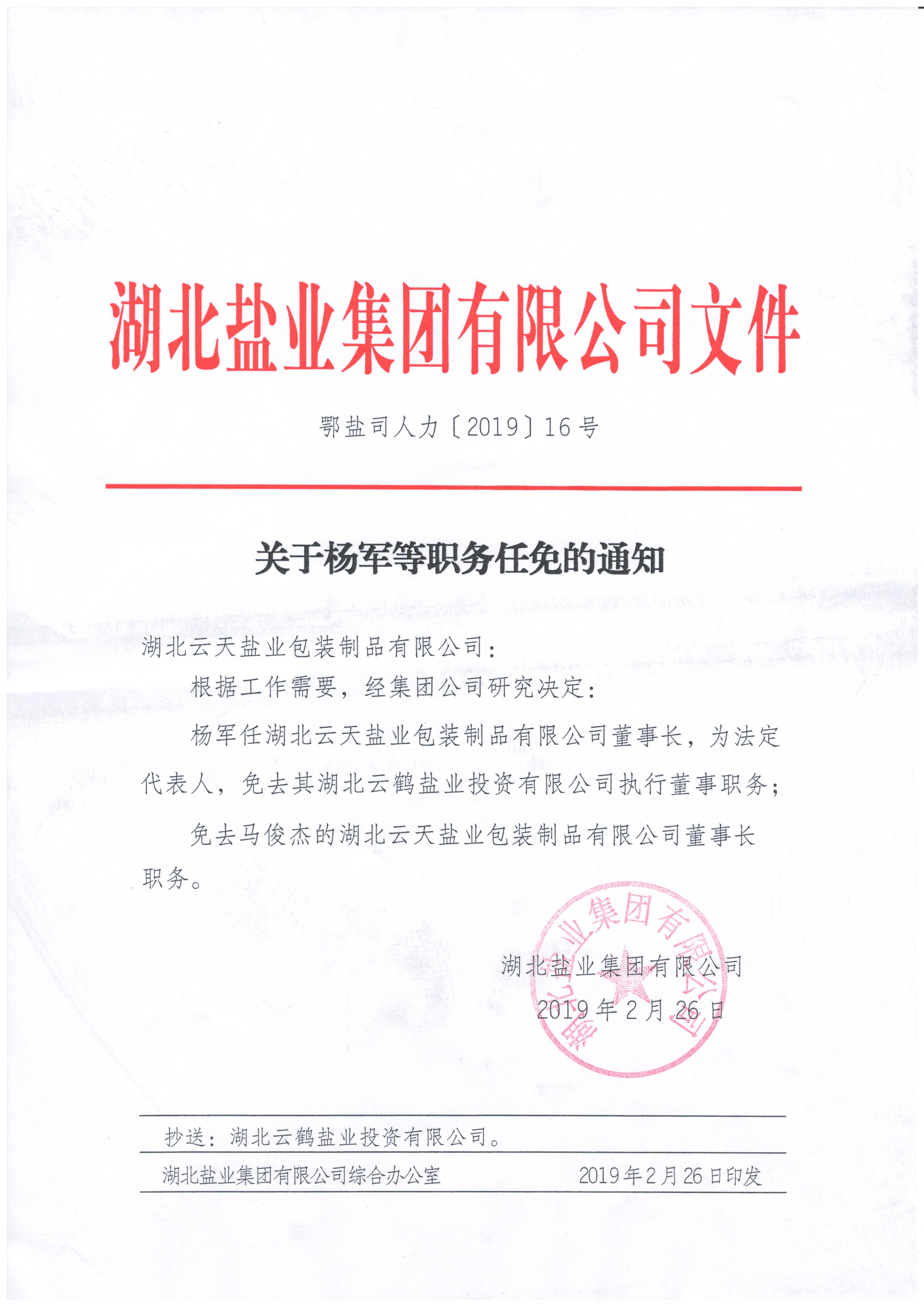 分子公司領(lǐng)導(dǎo)干部調(diào)整通知