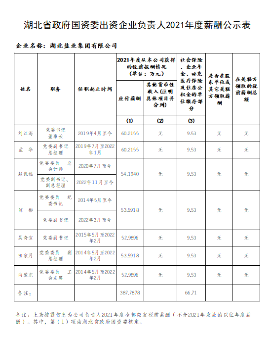 湖北省政府國資委出資企業(yè)負(fù)責(zé)人2019-2021年任期激勵收入公示表、湖北省政府國資委出資企業(yè)負(fù)責(zé)人2021年度薪酬公示表