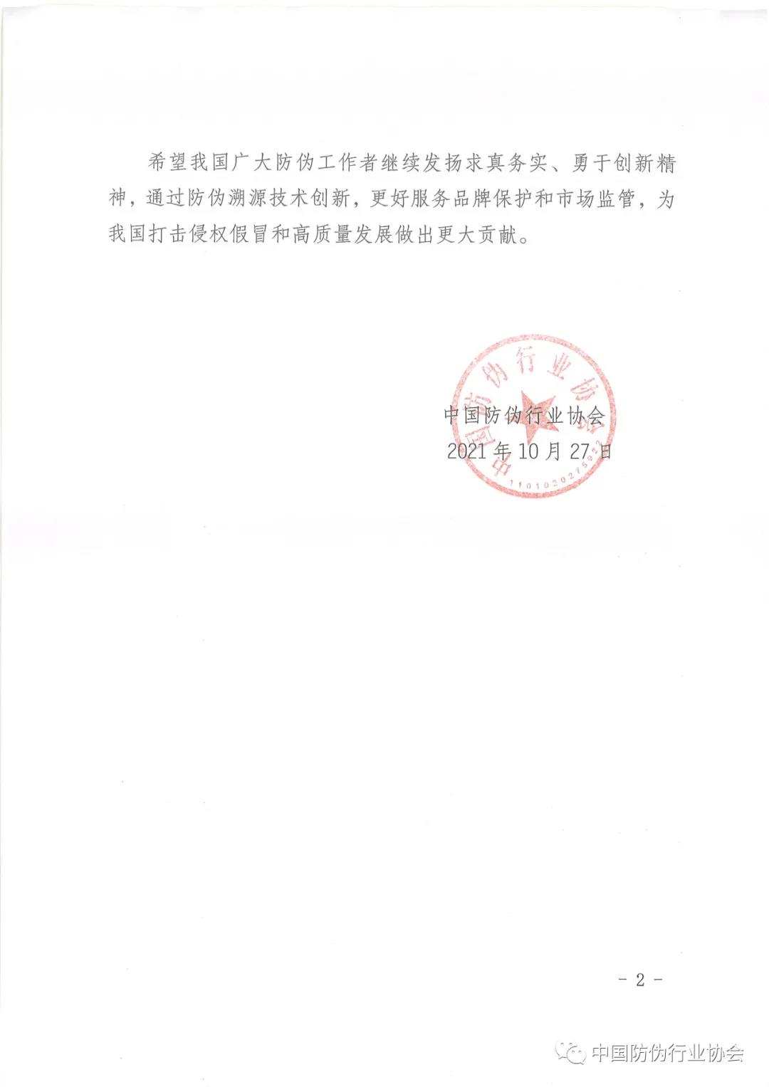 關(guān)于表彰第五屆中國(guó)防偽行業(yè)協(xié)會(huì)防偽科學(xué)技術(shù)獎(jiǎng)獲獎(jiǎng)項(xiàng)目的決定