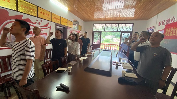 在金龍坪村,仙桃分公司與金龍坪村村委黨支部、湖北鹽業(yè)集團有限公司恩施分公司(以下簡稱恩施分公司)開展了一次聯(lián)合主題黨日活動。全體黨員共同重溫入黨誓詞,由金龍坪村村支書記介紹了克服重重困難帶領群眾脫貧致富的艱苦過程,和大力發(fā)展有機茶葉、民宿、餐飲、觀光等產(chǎn)業(yè),實現(xiàn)村級產(chǎn)業(yè)不斷壯大,村民生活越來越好的良好發(fā)展局面。駐村工作隊介紹了連續(xù)四屆工作隊一棒接著一棒干,從“精準扶貧”到“鄉(xiāng)村振興”,從開山修路、發(fā)展生態(tài)有機茶產(chǎn)業(yè),到引進資金實施安全飲水提水工程、興建文化禮堂,在切實改善了當?shù)厝罕娚a(chǎn)生活水平方面取得的顯著成績。