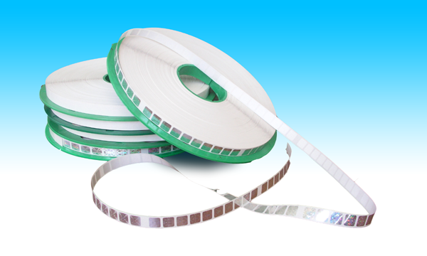 我公司是中國第一家開發(fā)盤形標(biāo)帶生產(chǎn)工藝并投放市場的企業(yè),生產(chǎn)的綜合防偽盤形標(biāo)帶均由本公司全息制版中心提供高檔全息母版,綜合應(yīng)用二十多種已通過國家評審的獨家防偽技術(shù),制作出的標(biāo)識具有圖像美觀、保密性強、防偽技術(shù)含量高、無法仿制等特點。綜合防偽盤形標(biāo)帶(用于全自動貼標(biāo))是將激光全息防偽標(biāo)識通過特殊工藝制作成自動貼標(biāo)用盤形標(biāo)帶,以適應(yīng)商品防偽標(biāo)識的自動化粘貼要求。