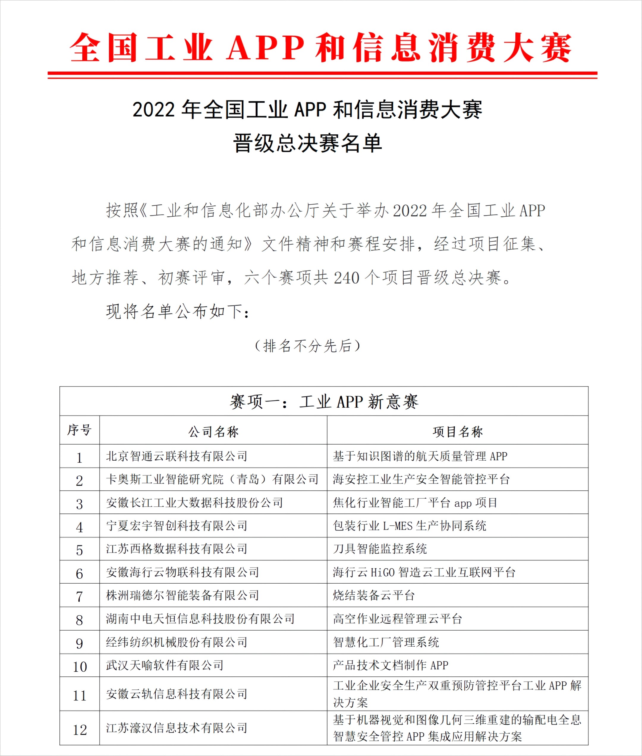 ????????按照《工業(yè)和信息化部辦公廳關于舉辦2022年全國工業(yè)APP 和信息消費大賽的通知》文件精神和賽程安排,經(jīng)過項目征集、地方推薦、初賽評審,六個賽項共240個項目晉級總決賽。? ??